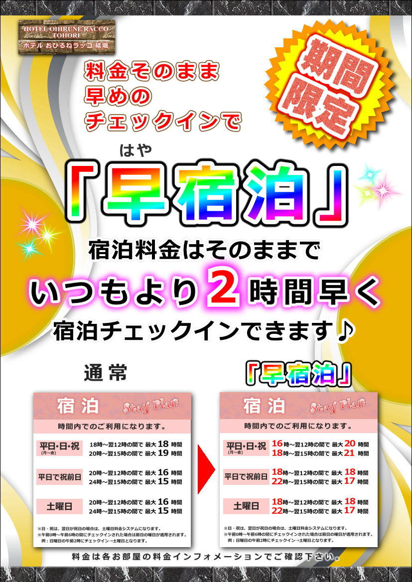 ※チェックインした時刻で、ご利用できる時間が変わります。