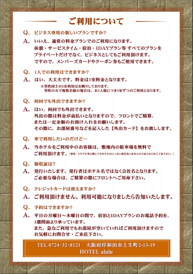 ※HOTEL alulu 岸和田は、風営法の定めにより18歳未満の方のご利用はお断りしております。