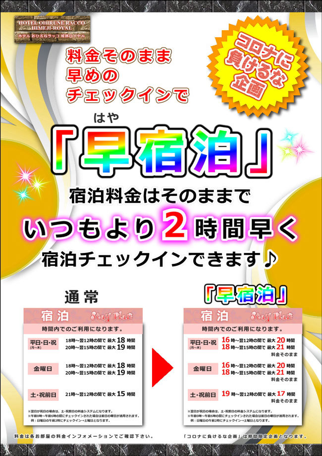 ※宿泊は、上記各曜日が祝前日にあたる場合、【土・祝前日】の料金システムになります。