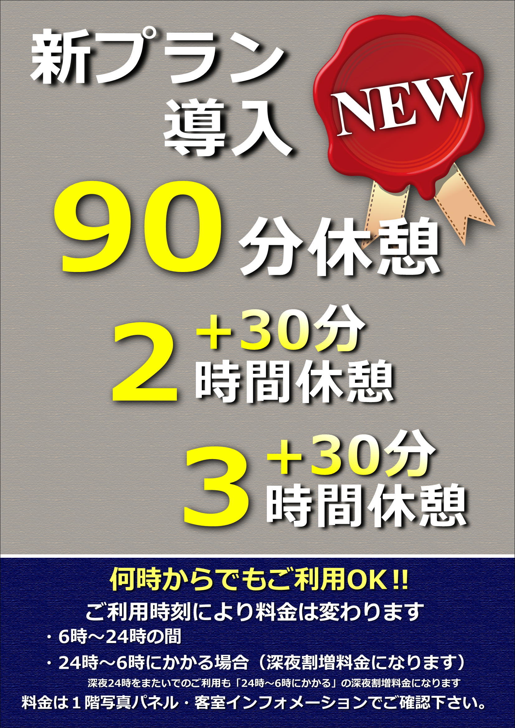 90分休憩 平日2700円~
